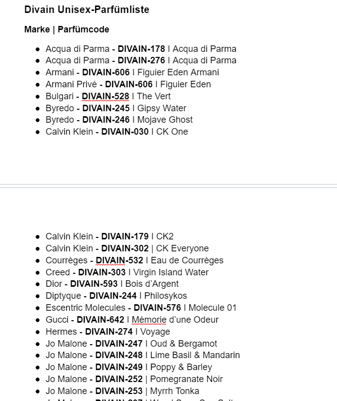 Divain Parfum Liste 2023 | PDF | Duftzwilling